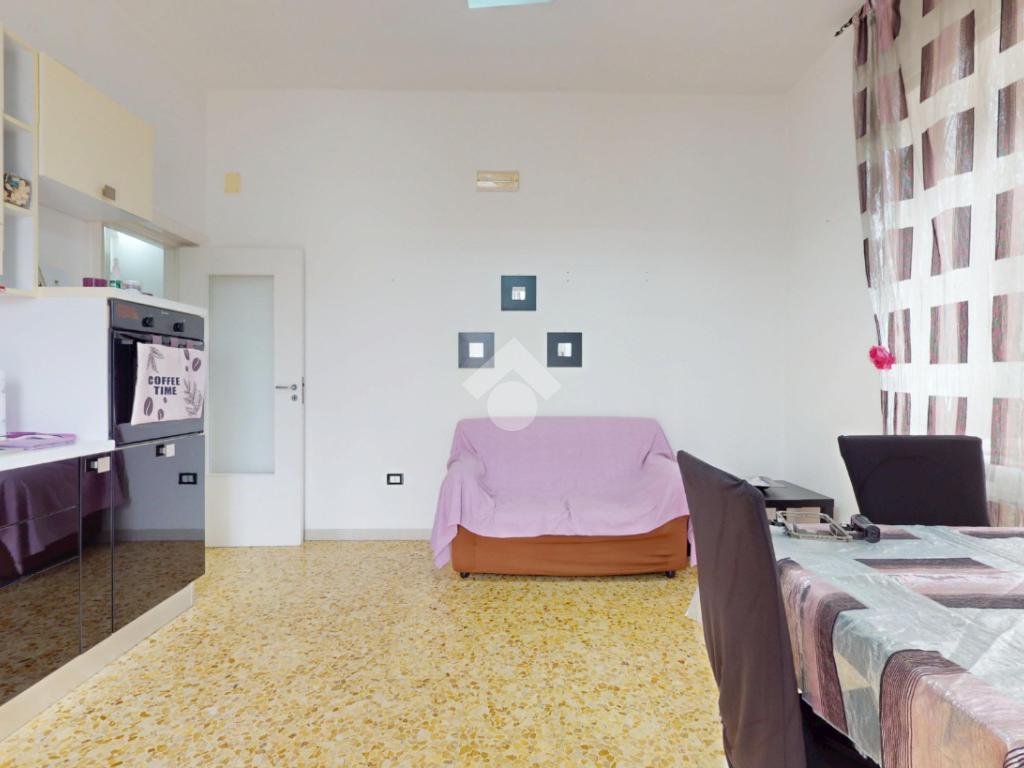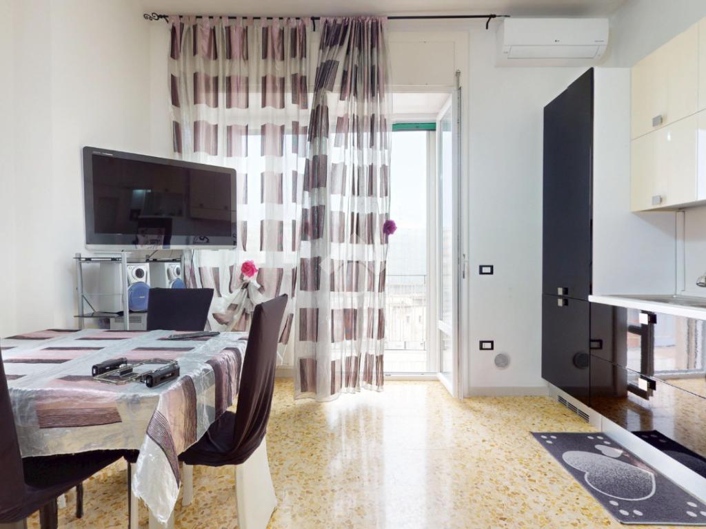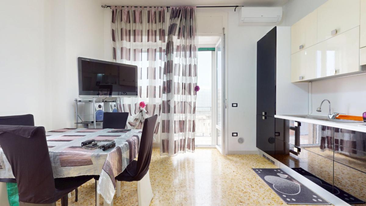 L'ingresso si apre su un corridoio che conduce direttamente alla zona giorno, un ambiente luminoso e accogliente grazie alla finestra e al balcone con affaccio su via Trento. La sala da pranzo è integrata con una cucina abitabile su misura, funzionale e ben organizzata.