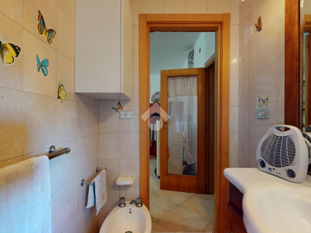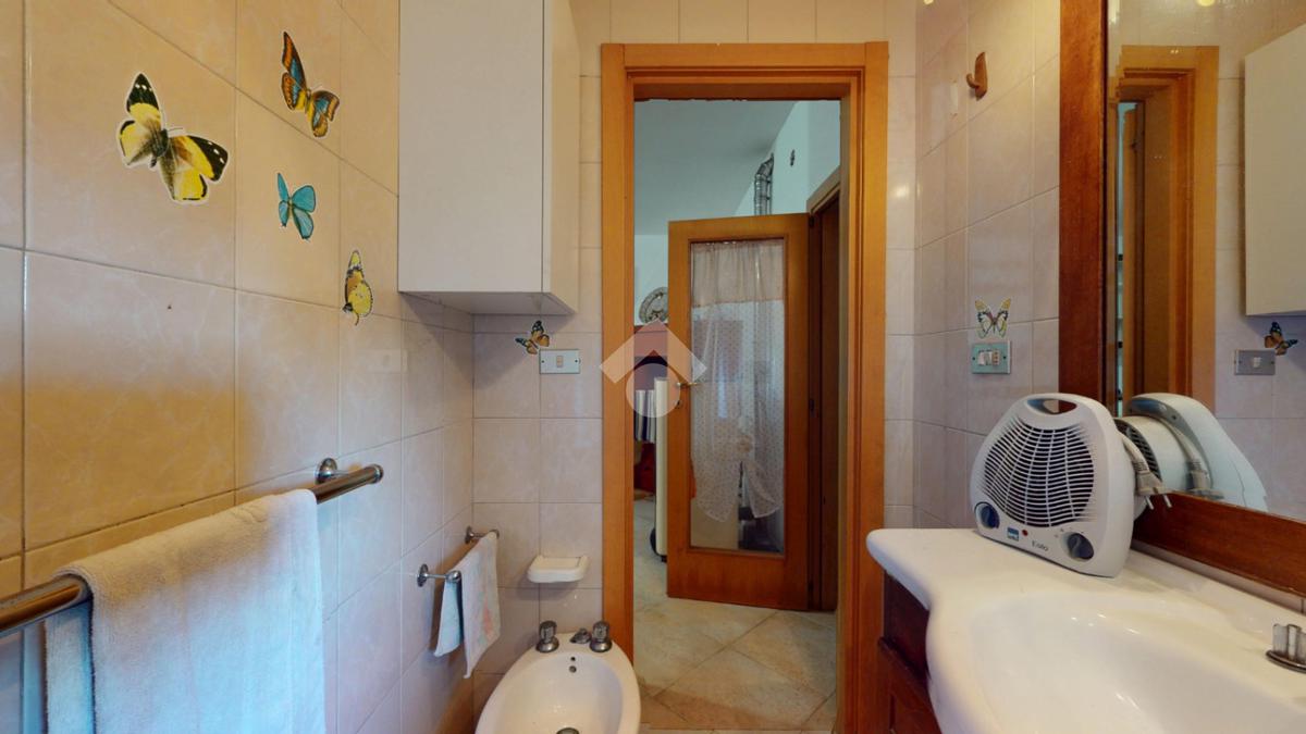 Proseguendo troviamo una stanza adibita a lavanderia e un bagno con vasca. La zona notte comprende una prima camera da letto, una seconda camera raggiungibile tramite un lungo corridoio e infine una terza stanza, dotata di secondo accesso, ideale come ulteriore camera, studio o spazio multifunzionale.