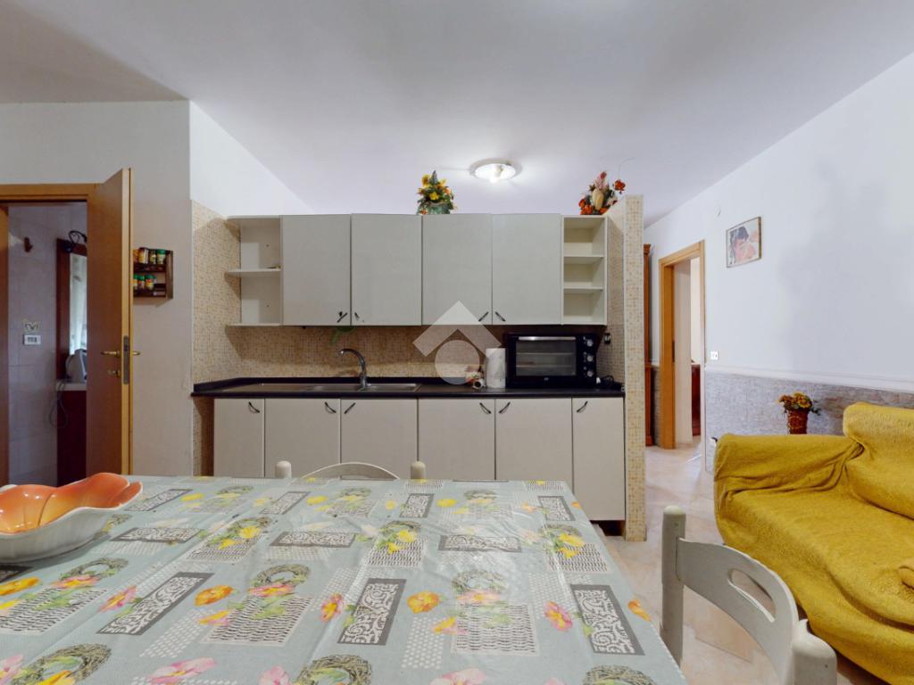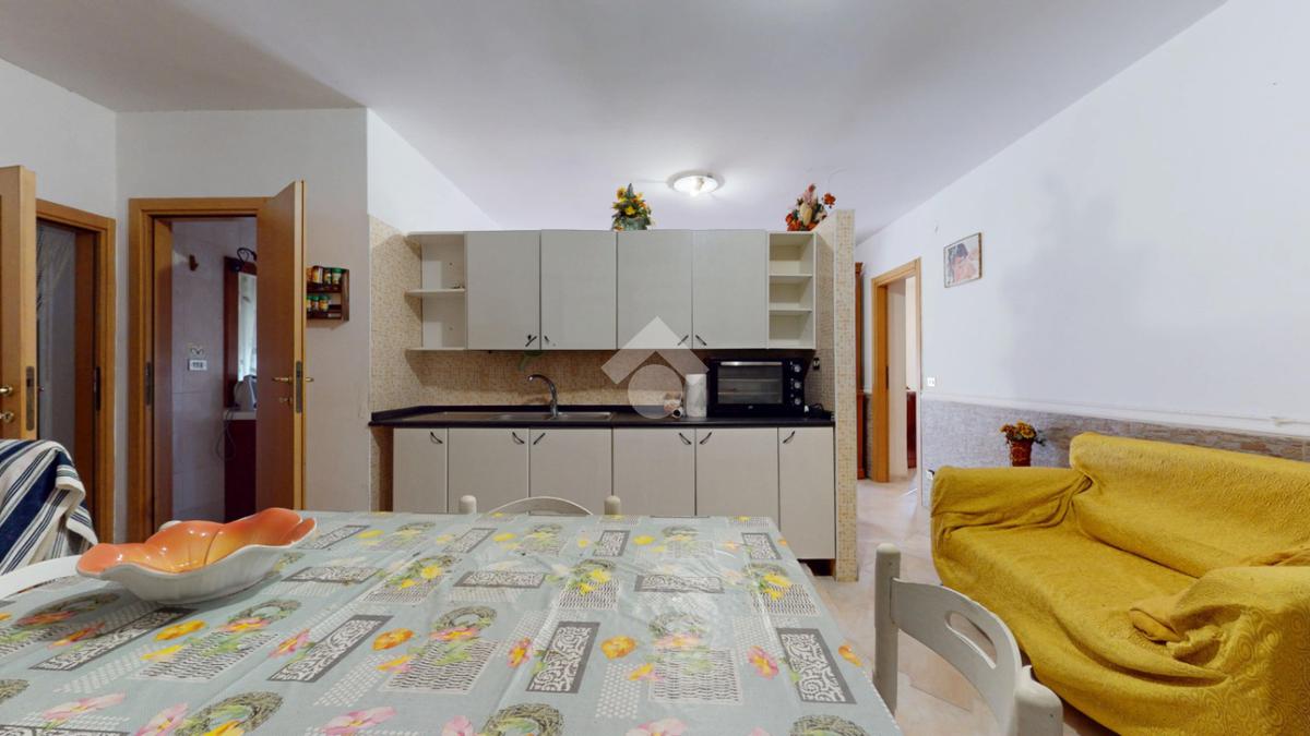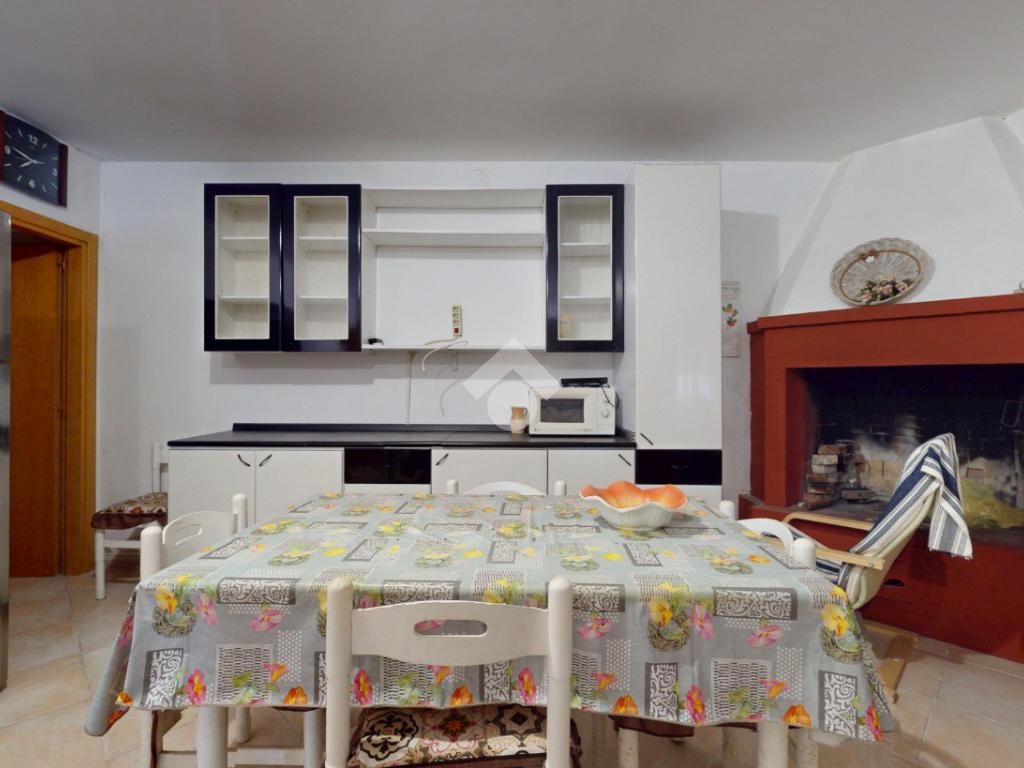L'ingresso all'abitazione avviene attraverso una veranda in legno, che introduce nella zona giorno luminosa, composta da sala da pranzo, cucina e camino, creando un ambiente accogliente e funzionale. Completa la zona giorno una piccola dispensa.
